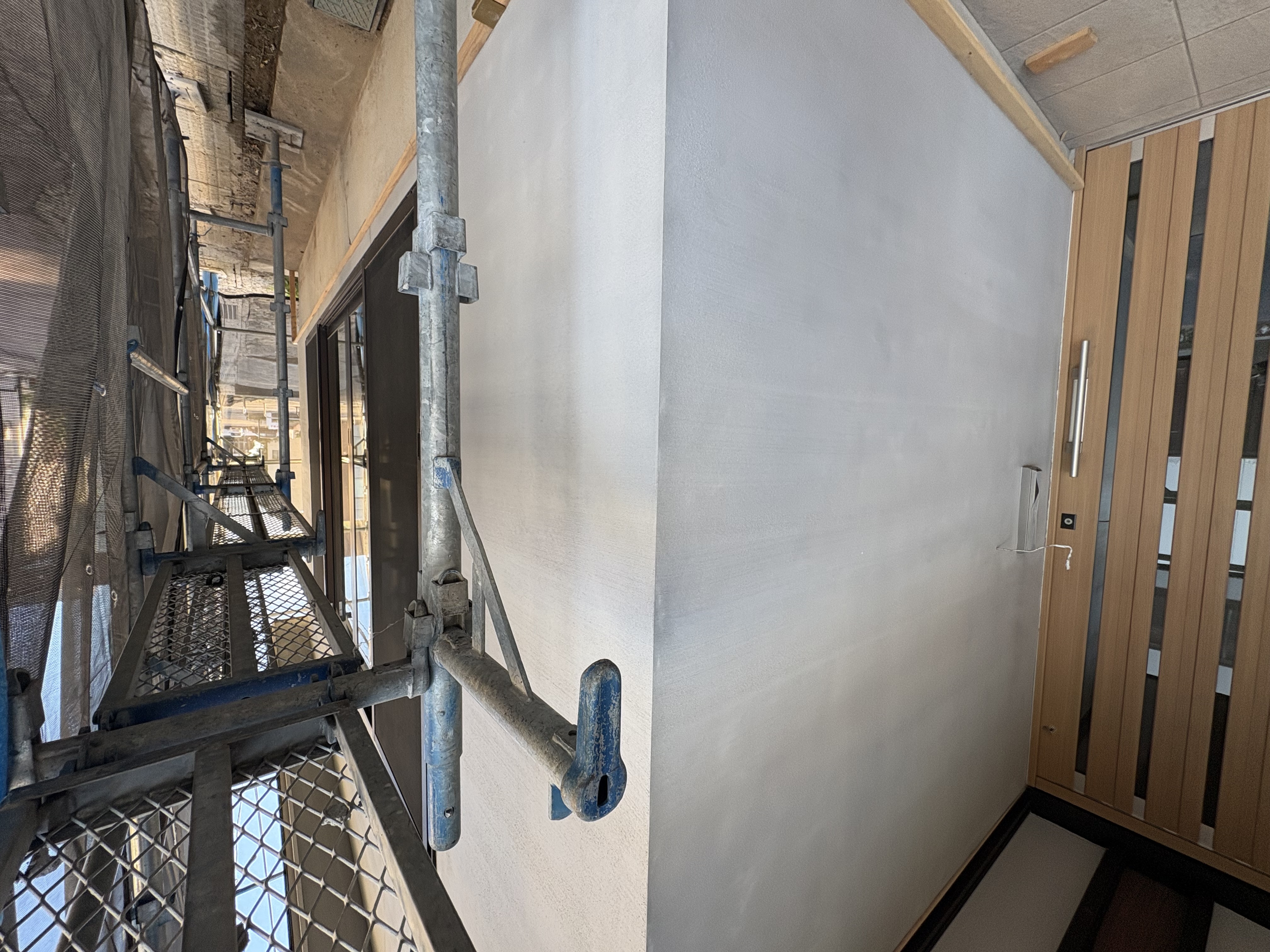 モルタル外壁を解体し、再度モルタル外壁しなおした写真。塗装前の状況です。