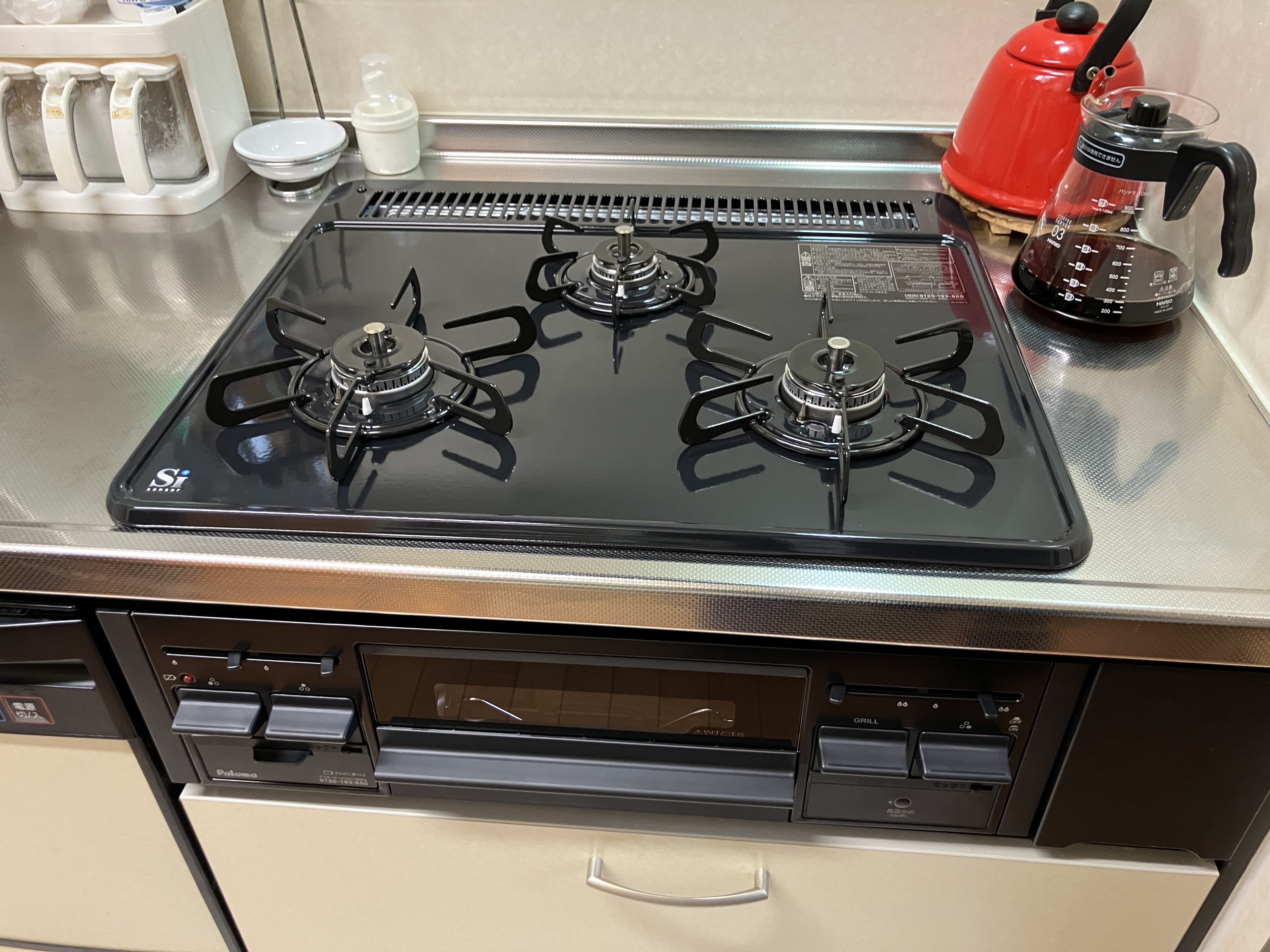 このようにガスコンロだけでも変えると、お手入れがかなり楽になるのでオススメです!