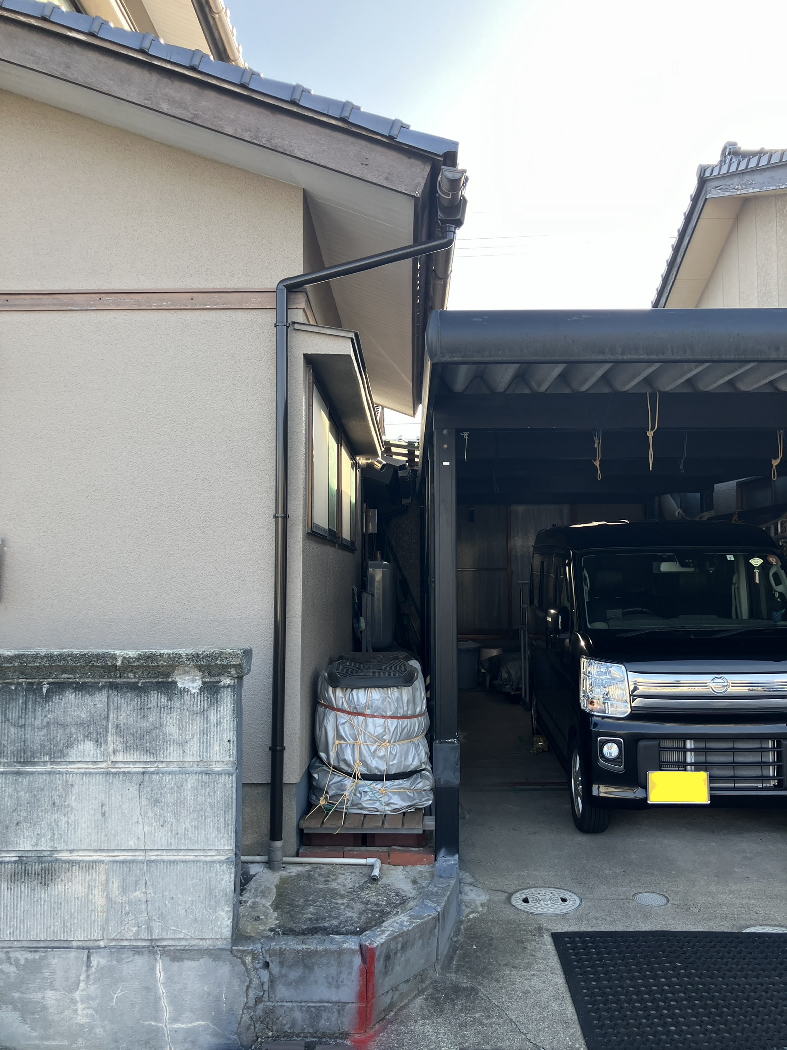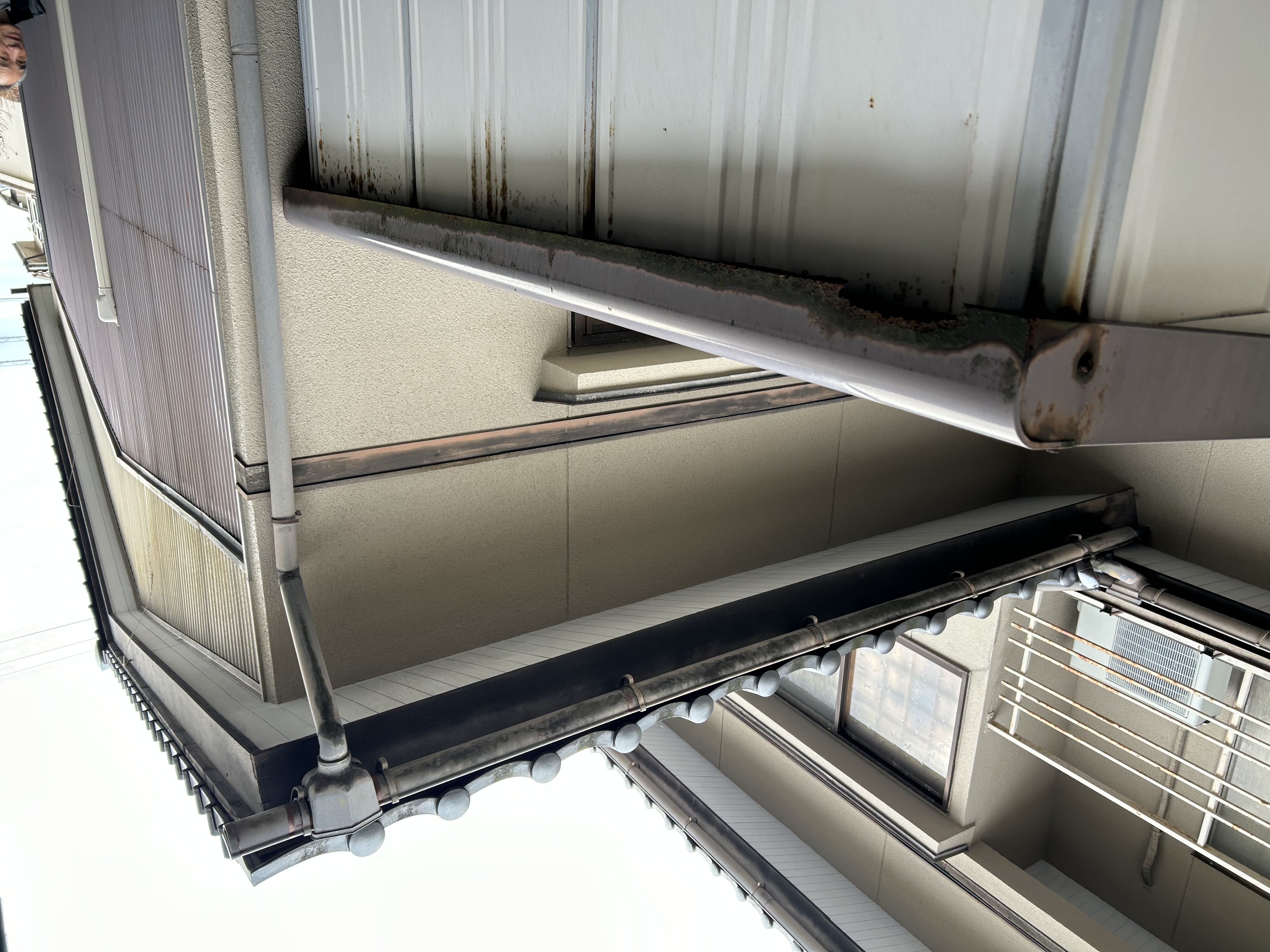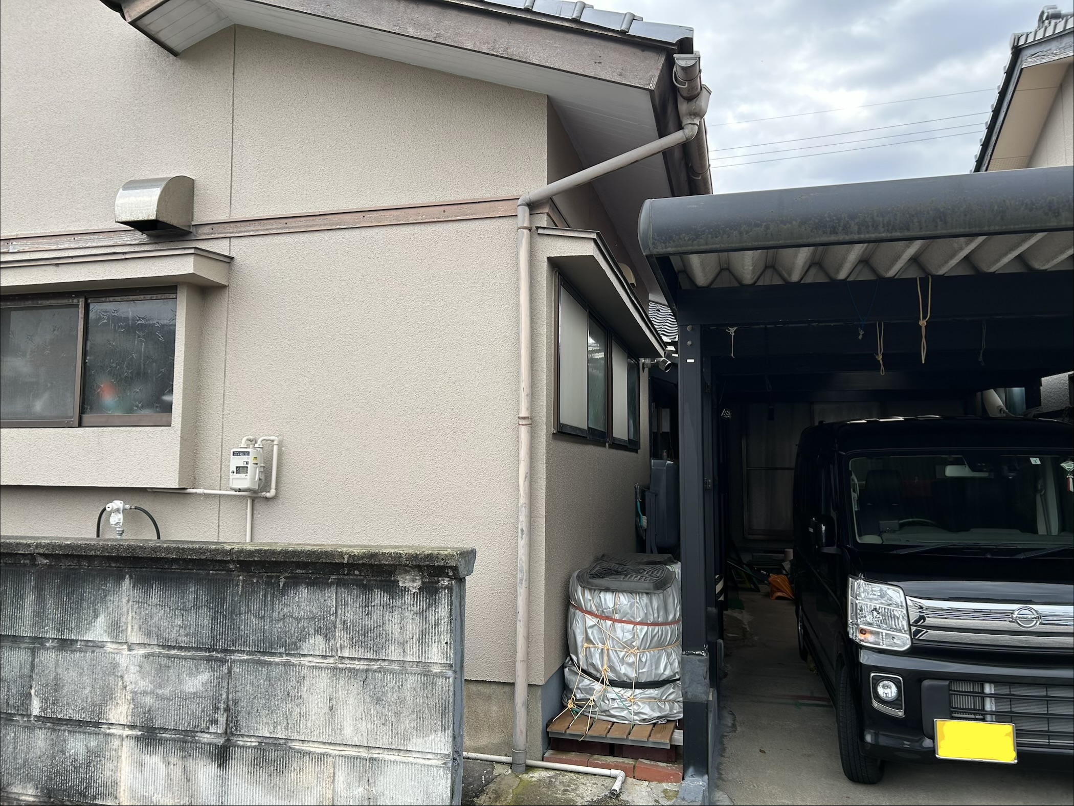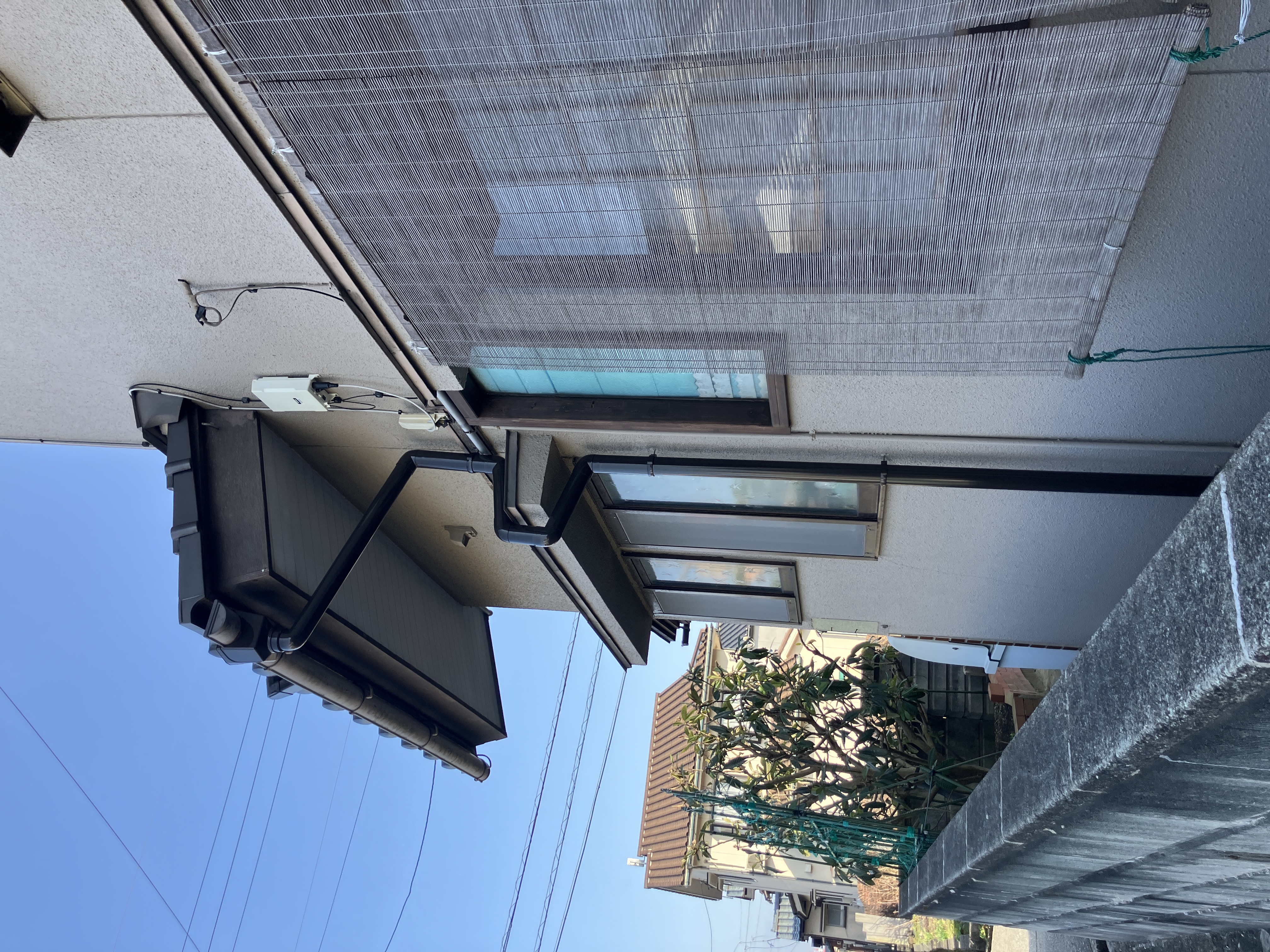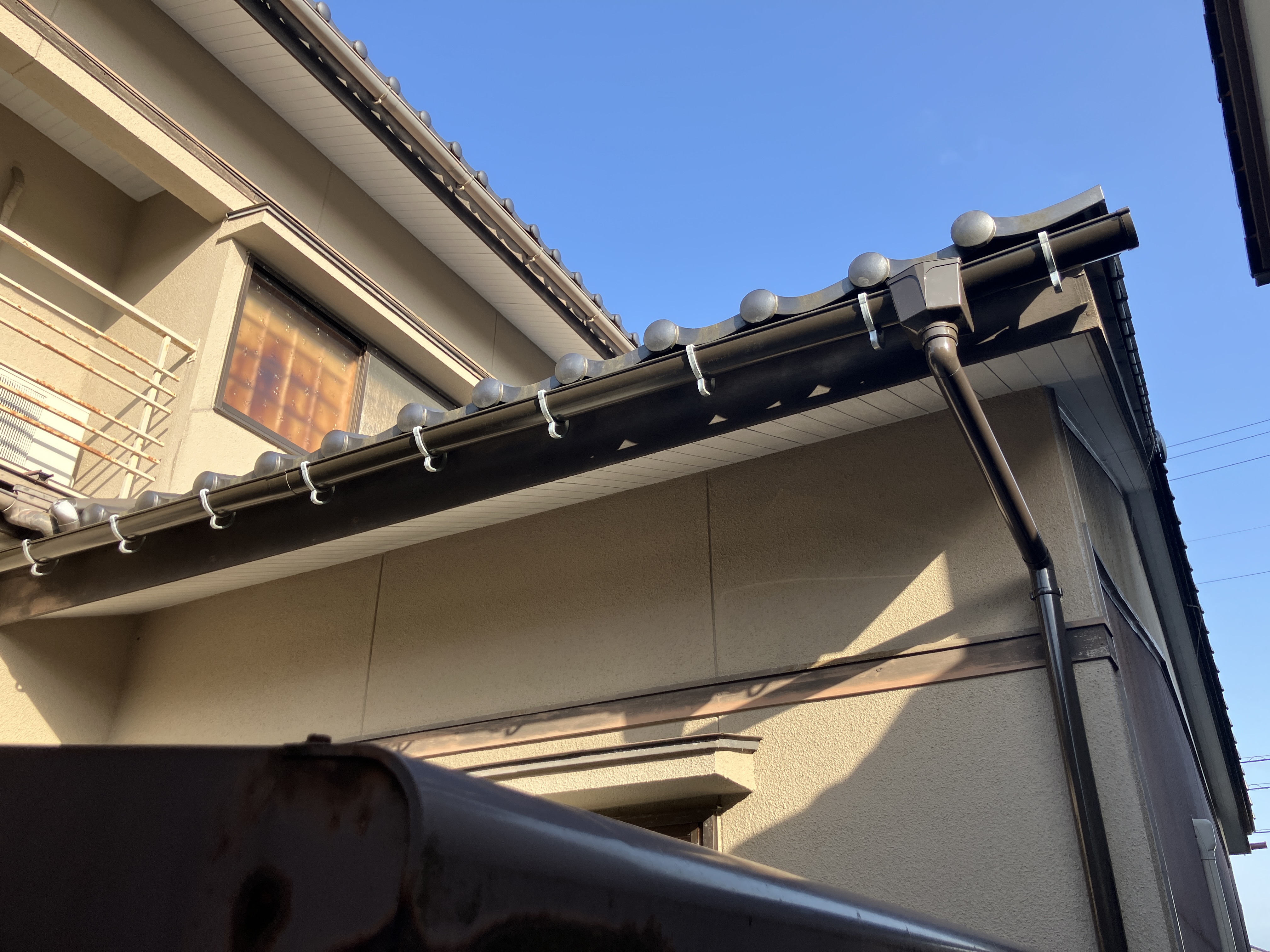 長年生き延びてきた雨樋をついに交換しました。少しずつバンドが外れたり色褪せたりしてきていました。