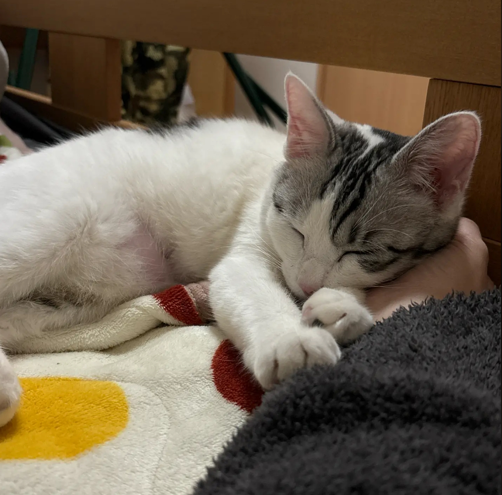 いつも私がベットに行くと着いてきて、隣で一緒に寝てます💤