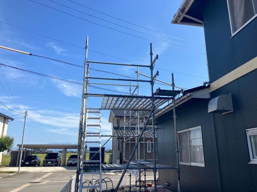 高所作業ですので足場設置させていただきました。
