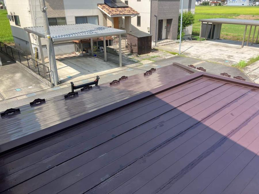 前からオリバー工事させていただいておりますお客様からのご依頼でした。物置部分の屋根の劣化に伴い塗装もしくは重ね張りで検討されました。塗装では心配ということでエコル重ね張りさせていただきました。