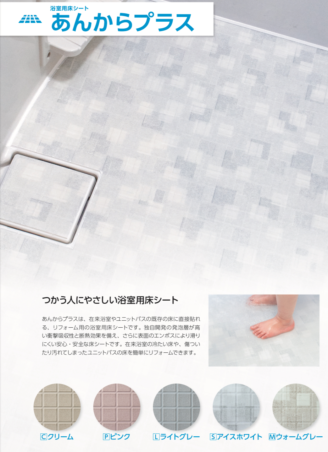 「あんからプラス」は、既存のお風呂の床に 重ねて貼る専用シート。
