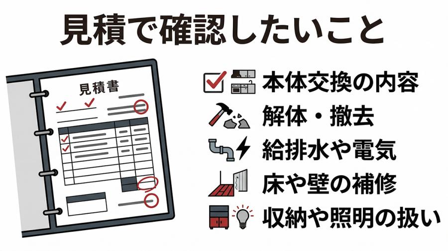 このあたりが見えていると、本体だけの工事なのか、空間まで一緒に整える内容なのかが分かってきます。