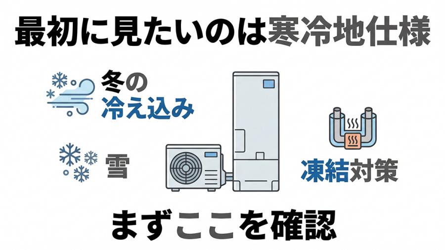 同じ寒冷地向けでも、容量の考え方、機能、設置条件の見せ方は少しずつ違います。