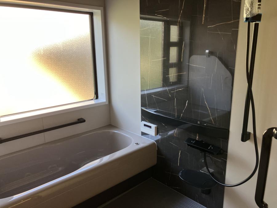 そして、こちらが完成後の浴室です! 施工前とは見違えるほど、明るくモダンで、高級感あふれる空間へと生まれ変わりました。